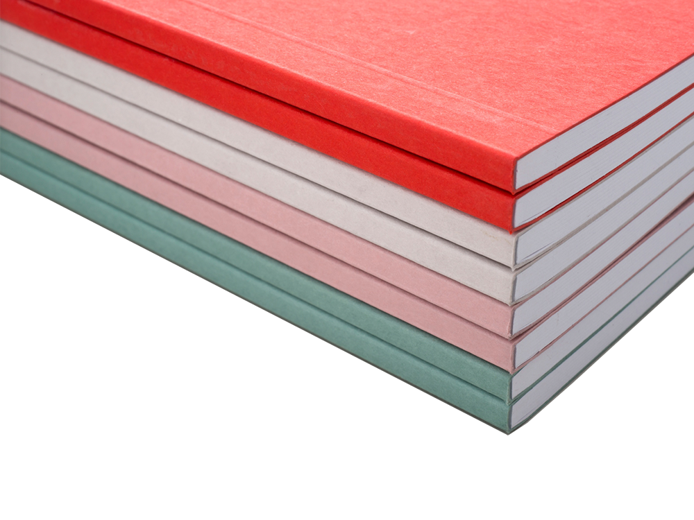 Libreta media carta, 90 hojas bond blancas con encapsulado en acabado mate o brillante.