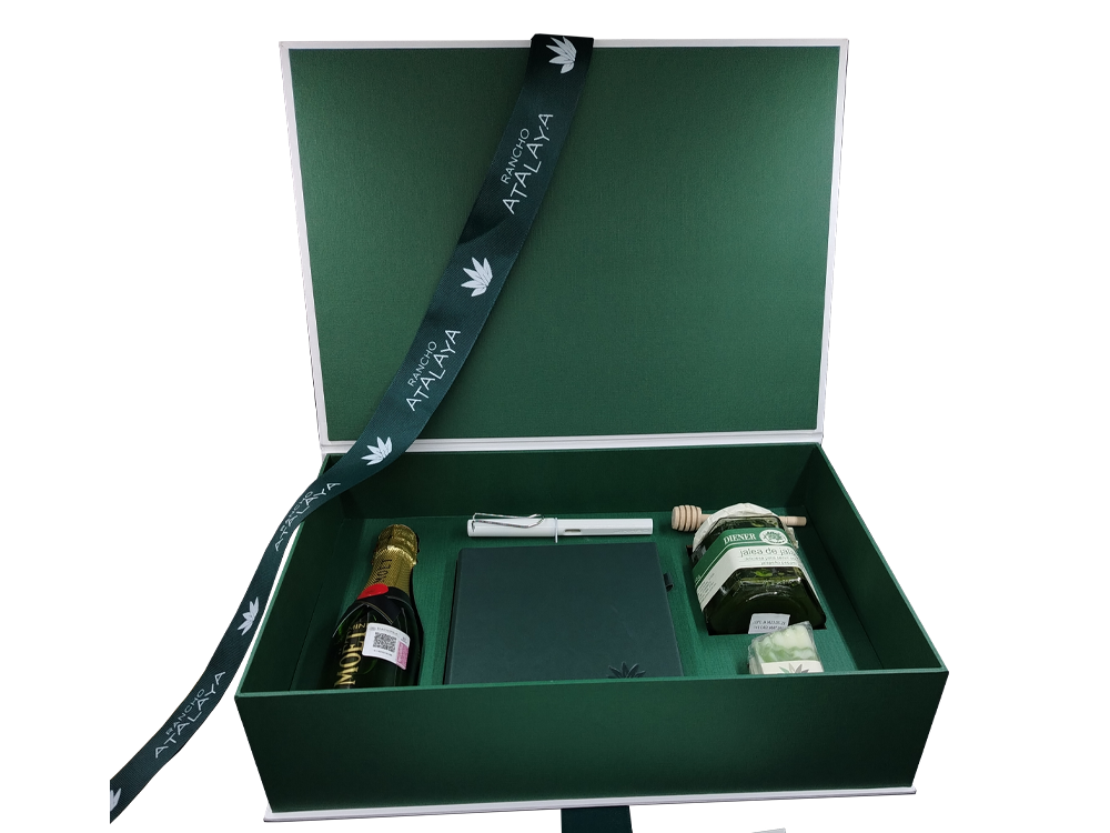 Cajita de cartón forrada, con manguillo de colección, incluye tinta china.