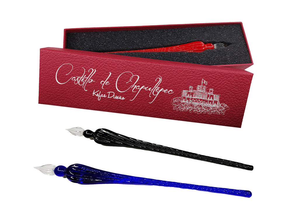 Manguillo de cristal para caligrafía con caja de cartón forrada.