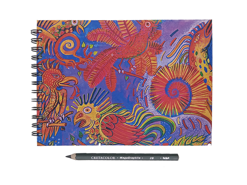 Libreta pasta dura con hojas de dibujo y lápiz grafito 2B.